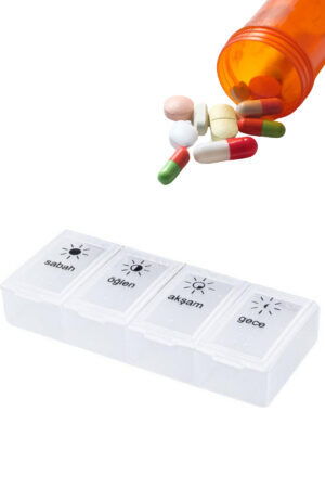 • 1 adet Günlük 4 bölmeli hap kutusu